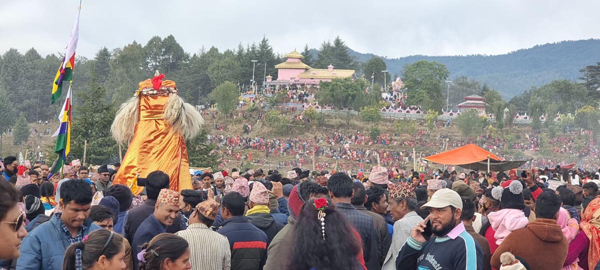 उग्रतारा मेलाको मुख्य आकर्षण गाँच नचाउँदै गरेको एक दृष्य। तस्बिरः पुष्कर भण्डारी।