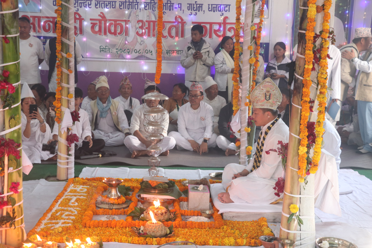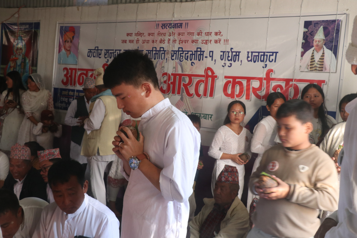 हिले, मंसिर ६ गते । धनकुटाको सहिदभूमि गाउँपालिका गुर्धम, छिन्ताङ, धापलगायत स्थानका तीन सय भन्दा बढी परिवारका सदस्य मङ्सिर शुक्लपक्षमा सेता कुर्तासुरुवाल लगाएर गुर्धममा रहेको सत्सङ भवनमा भेला हुन्छन् । कविरपंथी धर्म मान्ने यहाँका स्थानीयको आफ्नो मुख्य पूजा आनन्दी चौका आरती गर्न यहाँ भेला हुन्छन् ।