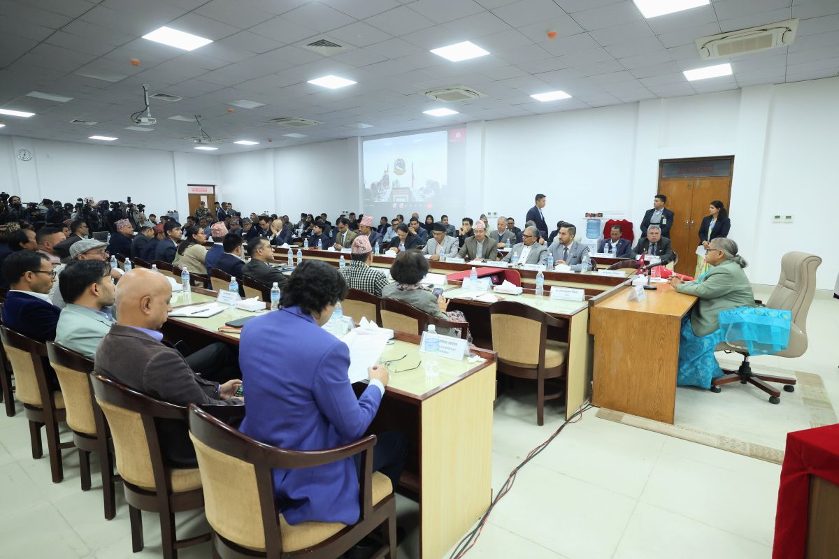 प्रधानमन्त्री सुशीला कार्कीको अध्यक्षतामा बसेको आठौं सामाजिक सुरक्षा दिवसको बैठक । तस्बिर : प्रधानमन्त्रीको सचिवालय