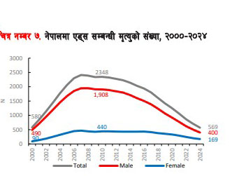 सन् २०२४ मा मात्रै ५६९ व्यक्तिको एड्स कारण मृत्यु भएको अनुमान छ जुन सन् २०१० को तुलनामा ८६ प्रतिशतले घटेको छ ।