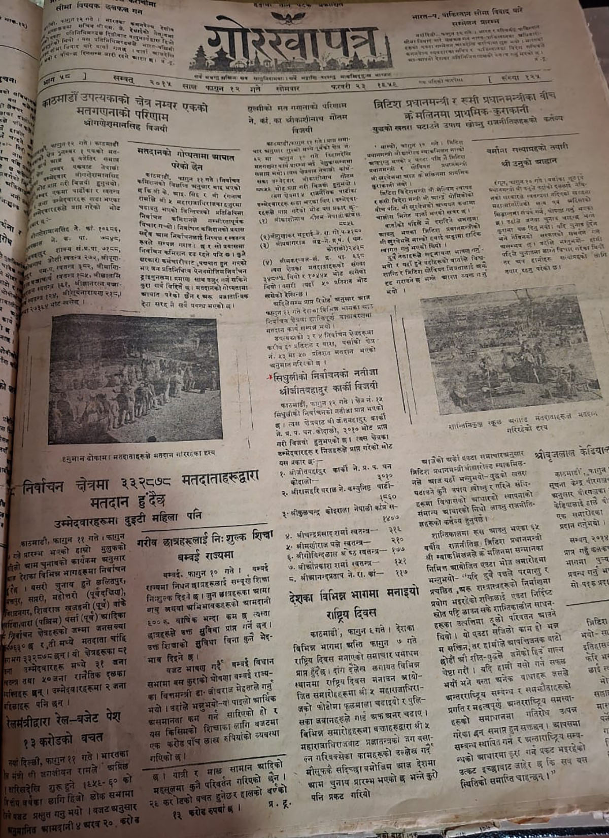 (आलेख गोरखापत्रका २०१५ र २०१६ सालका विभिन्न अङ्कसँगै डा. जगत नेपालको ‘पहिलो सांसद’ र सूर्यप्रसाद श्रेष्ठको ‘लोकतन्त्र र जनअभिमत’ पुस्तकलाई आधार बनाएर तयार गरिएको हो ।)