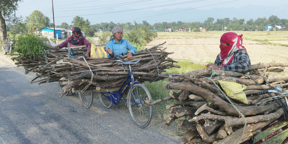 पश्चिम नवलपरासी, मङ्सिर १६ गते । सुनवल स्वाठीकी कमला चौधरीलाई अहिले वर्षभरका लागि इन्धनको स्रोतको रूपमा दाउराको जोहो गर्नुपर्ने जिम्मेवारी छ । दाउरा र गुइँठाको भरमा खाना पकाउँदै आएको चौधरी परिवारलाई जाडो लागेसँगै दाउरा अपरिहार्य छ ।