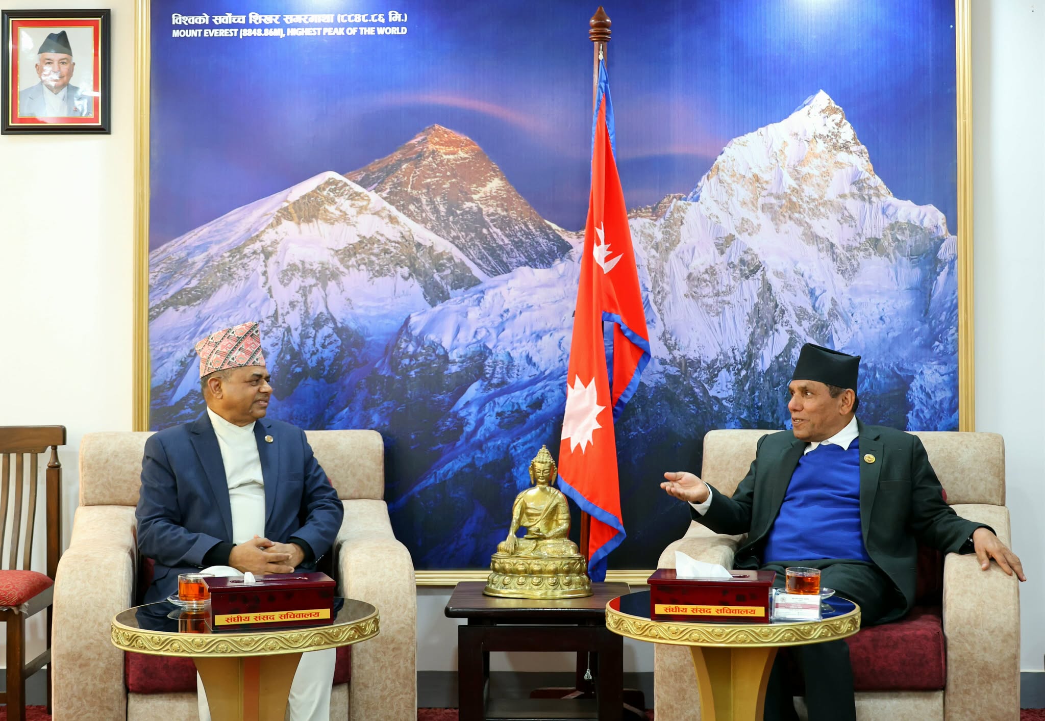 सिंहदरबारस्थित राष्ट्रियसभा अध्यक्षको कार्यकक्षमा दुवै मन्त्रीले अध्यक्षसँग छुट्टाछुट्टै भेट गर्नुभएको उहाँको सचिवालयले जनाएको छ ।