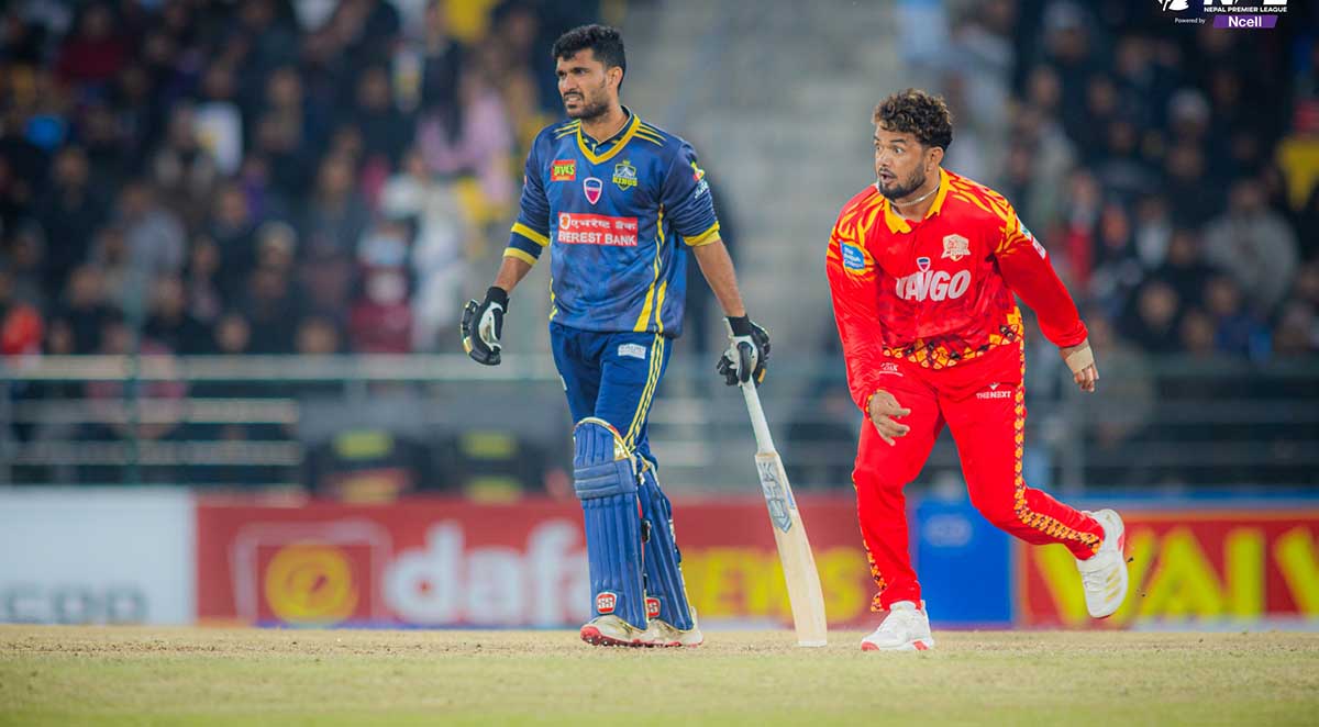 विराटनगरका लागि लोकेश बमले ३५ रन बनाउनुभयो । उहाँले ४२ बलमा दुई चौका र दुई छक्का हान्नुभयो । यस्तै बसिर अहमदले २८, साम हिजलेटले २७, प्रतिश जिसीले ११ र मर्सेन्ट डे लन्जले १० रन बनाउनुभयो । अन्तिममा एक बल खेल्नुभएका सन्दीप लामिछानेले एउटा छक्का हान्नुभयो ।