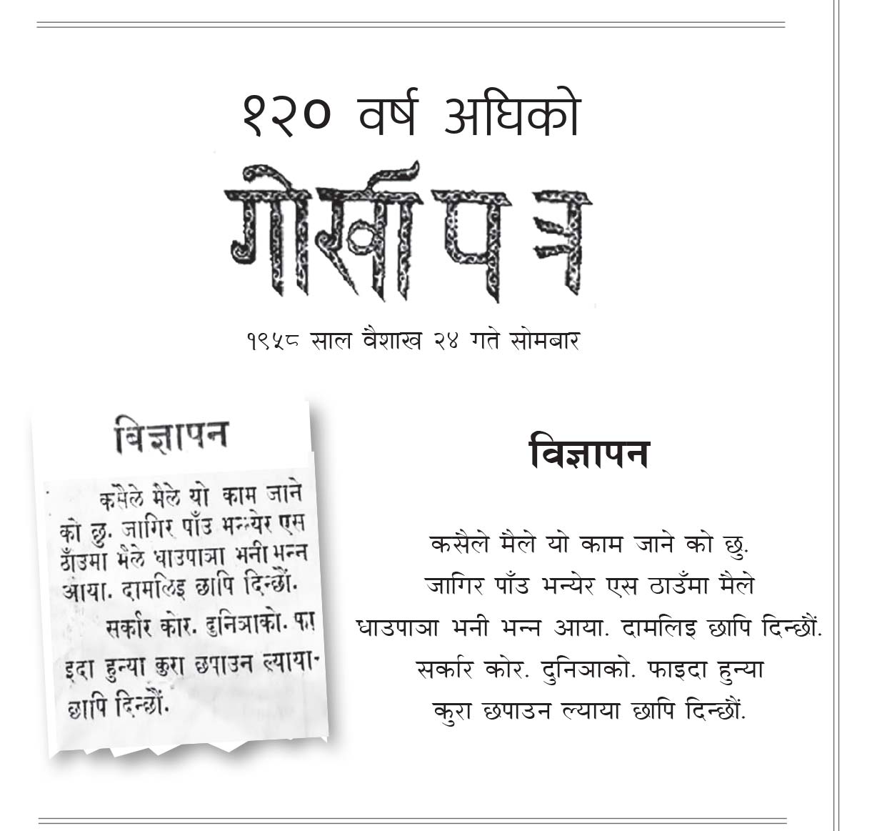 १२० वर्ष अघिको गोर्खापत्र