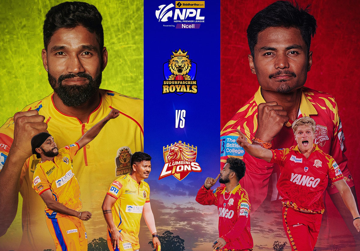 काठमाडौँ, मङ्सिर २६ गते । दोस्रो संस्करणको नेपाल प्रिमियर लिग (एनपिएल) को उपाधिका लागि शनिबार साविक उपविजेता सुदूरपश्चिम रोयल्स र लुम्बिनी लायन्स भिड्ने भएका छन् । कीर्तिपुरस्थित त्रिवि अन्तरराष्ट्रिय क्रिकेट रङ्गशालामा उपाधिका लागि दिउँसो ३:३० बजे भिडन्त हुँदैछ ।