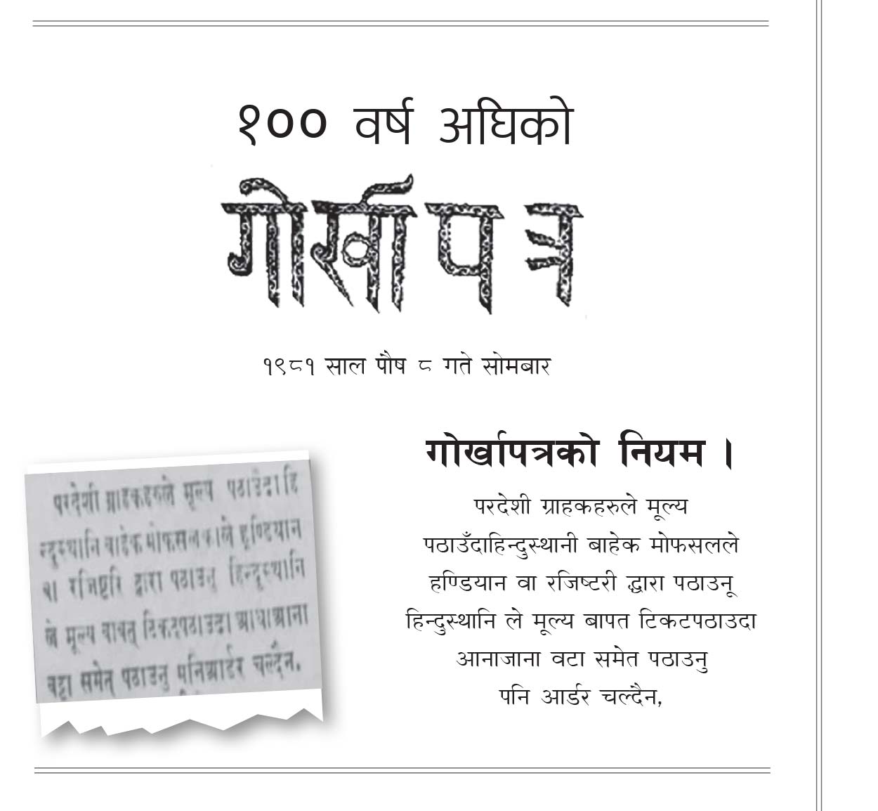 १०० वर्ष अघिको गोर्खापत्र