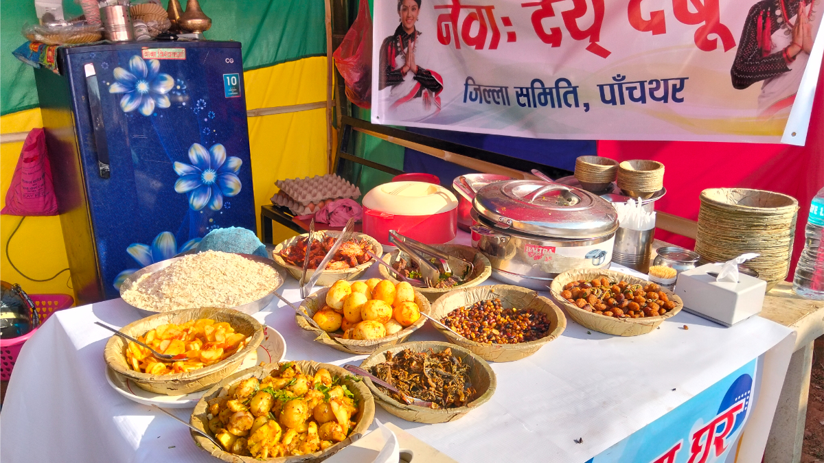 फिदिम बजारको बिपी पार्क क्षेत्रमा झकिझकाउ बनाएर सजाइएका स्टलमा नेवारी, तामाङ, शेर्पा, गुरुङ, राई, नेवार, मगर, गुरुङ र लिम्बूसहित पाँचथरमा बसोबास गर्ने विभिन्न जाती जनजातीका संस्कृतिमा आधारित रैथाने खानेकुरा राखिएको छ।
