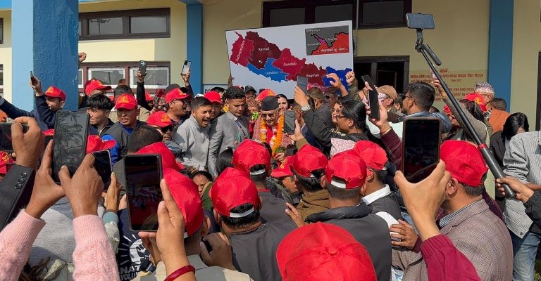 दमक, माघ ५ गते । नेकपा (एमाले) का अध्यक्ष तथा पूर्व प्रधानमन्त्री गृह जिल्ला झापा आउनुभएको छ । उम्मेद्वारी दर्ताका लागि अध्यक्ष ओली झापाको दमक आउनुभएको हो ।
