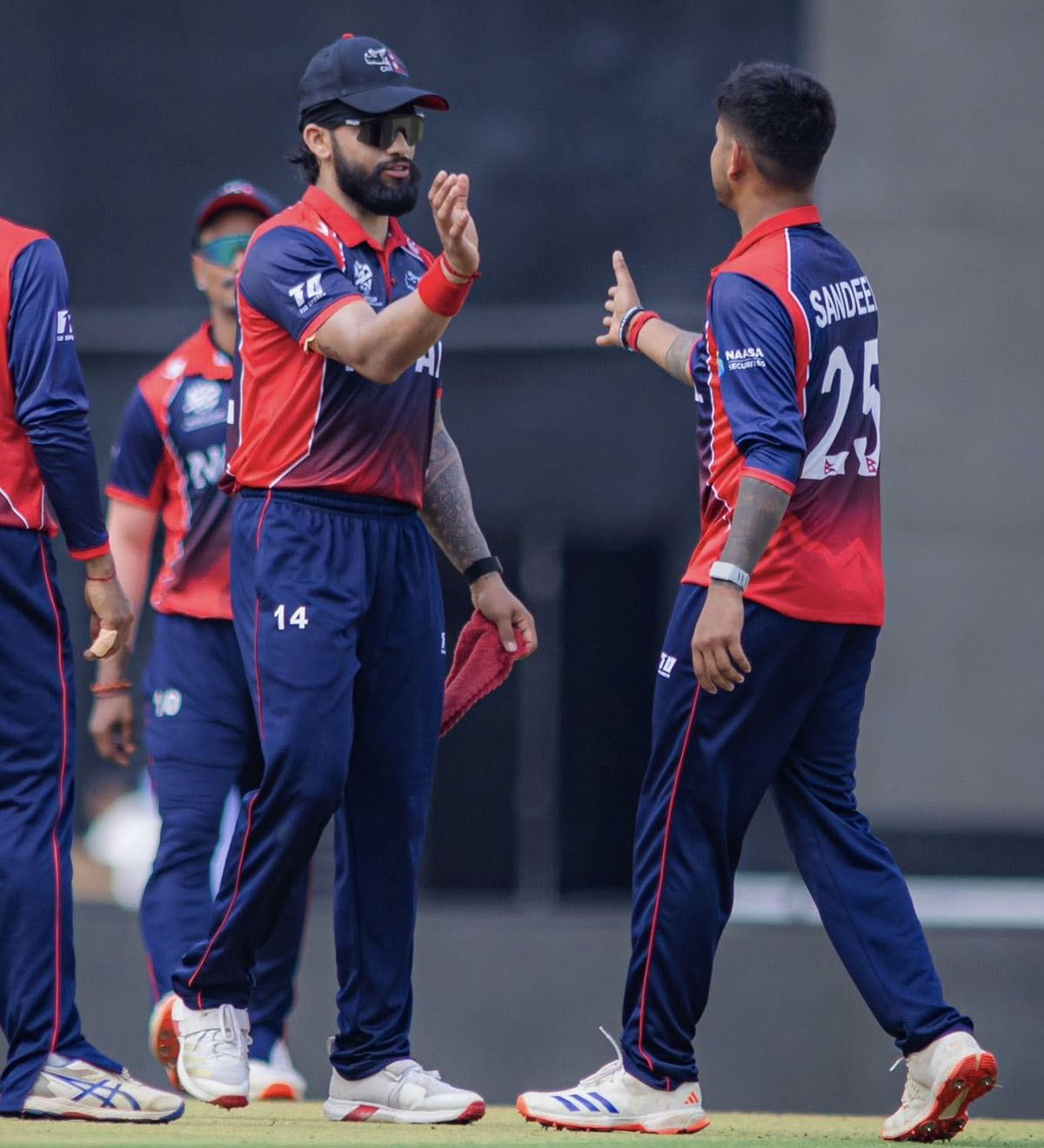ओपनर कुशल मल्ल १२ रनमा आउट हुनुभएको खेलमा शेख रिटायर्ड हट भएपछि क्रिजमा गुल्सन झा पुग्नुभएको थियो । कप्तान दीपेन्द्रसिंह ऐरीले नटआउट ९ रन बनाउनुभएको खेलमा लोकेश बमले पाँच रन थप्नुभयो ।