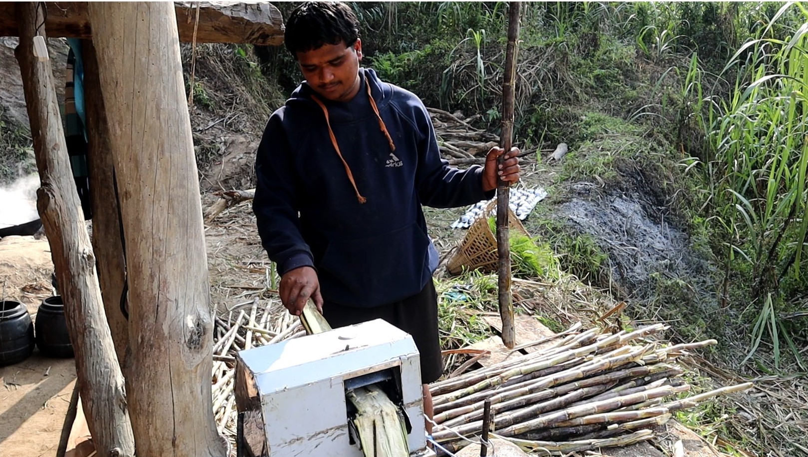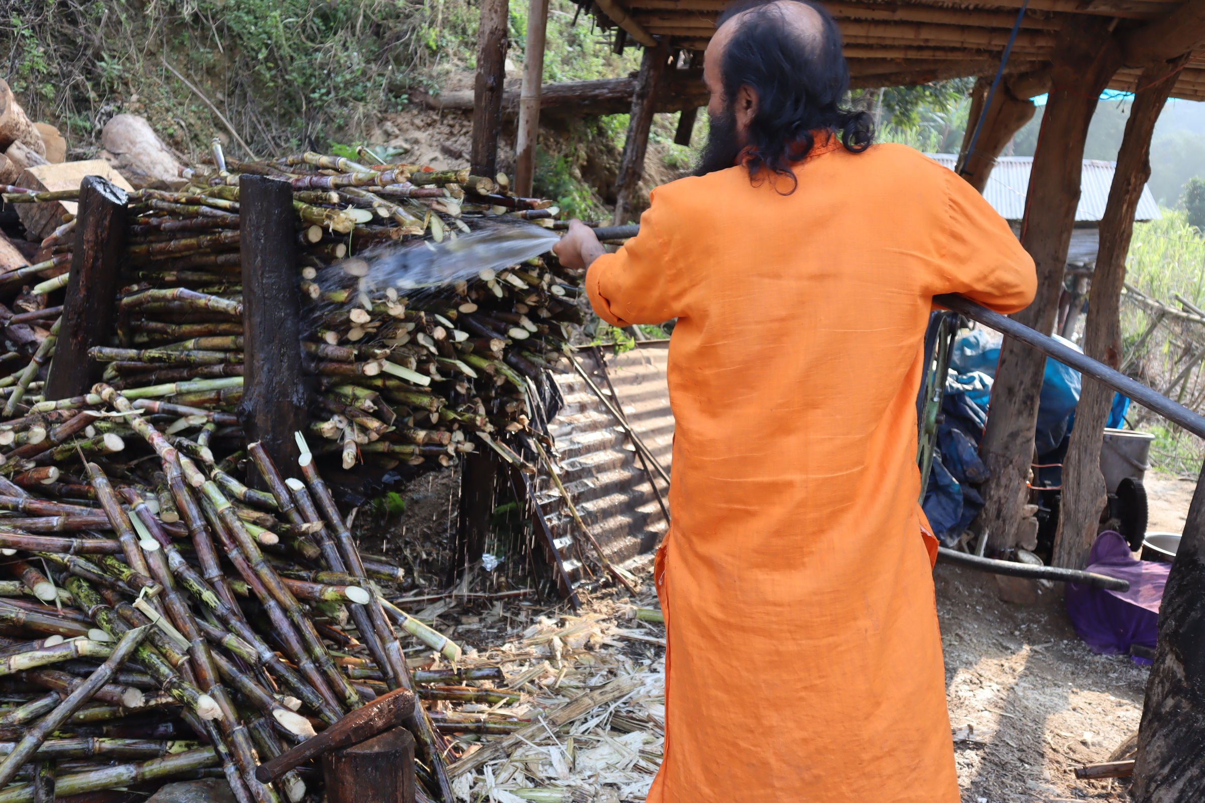खुदो र सखर बनाउन व्यस्त किसान । तस्बिर : राधा लुइटेल