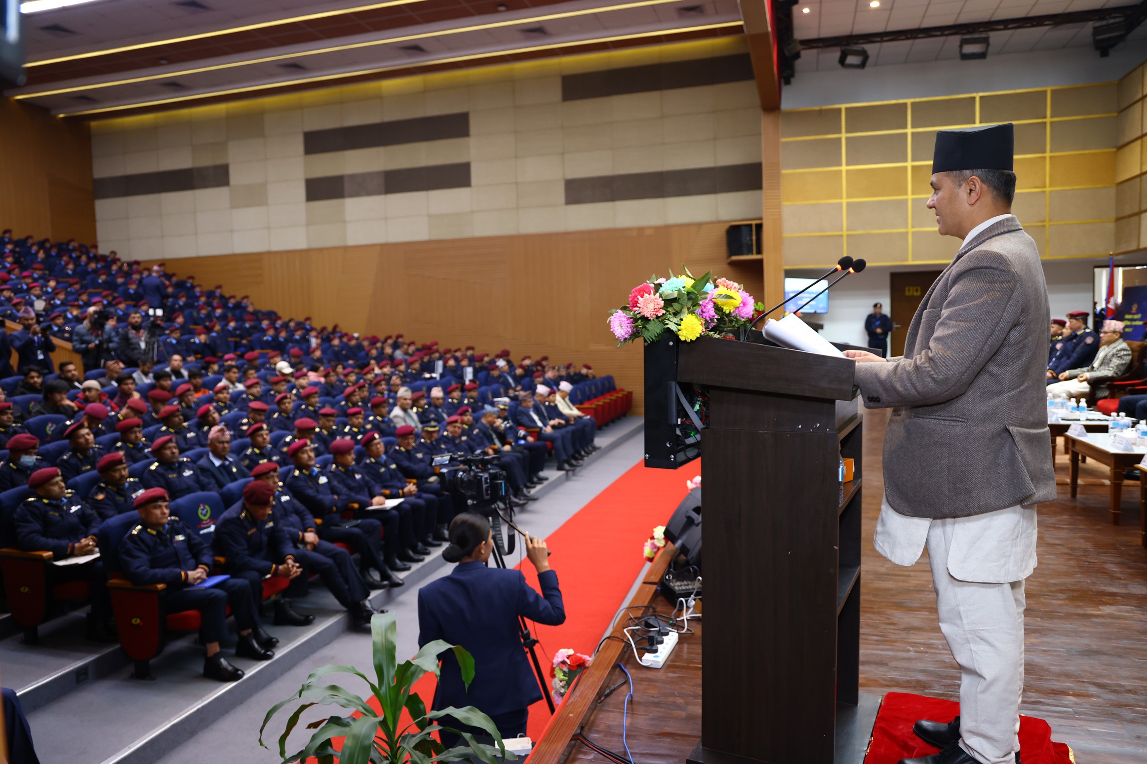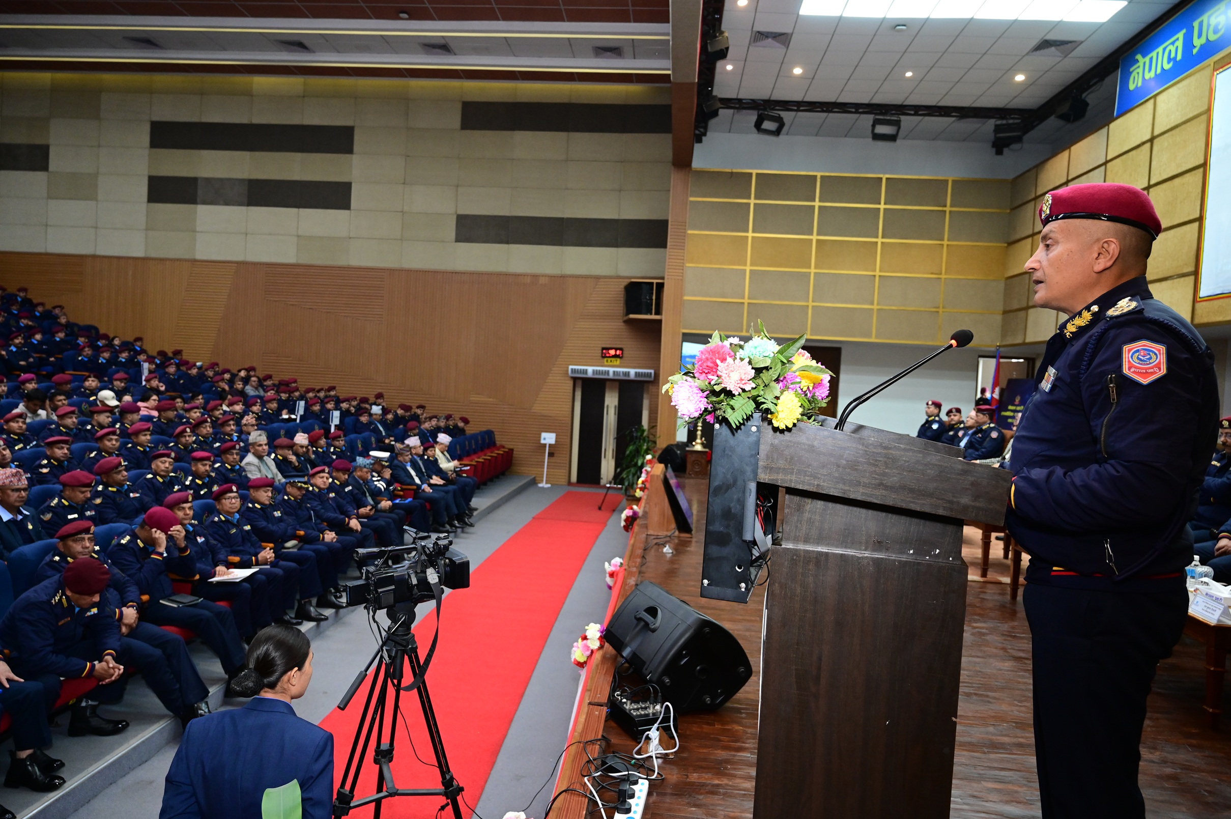 प्रहरी महानिरीक्षक दानबहादुर कार्कीले धन्यवाद मन्तव्य व्यक्त गर्दै संविधान, प्रहरी ऐन तथा प्रचलित कानुन अनुसार शान्ति–सुरक्षा कायम राख्ने, अपराध रोकथाम तथा अनुसन्धान गर्ने र मानव अधिकारको संरक्षण गर्दै व्यावसायिक प्रहरी सेवा प्रदान गर्न नेपाल प्रहरी सदैव प्रतिबद्ध रहेको बताउनुभयो। संघीय शासन प्रणाली कार्यान्वयनसँगै प्रहरीको भूमिका, दायित्व र कार्यक्षेत्र बहुआयामिक बन्दै गएको उल्लेख गर्दै सङ्गठनात्मक क्षमता, रणनीतिक सोच, प्रविधिको प्रयोग तथा अन्तरनिकाय समन्वय सुदृढ बनाउनुपर्ने आवश्यकता रहेको उहाँले बताउनुभयो।