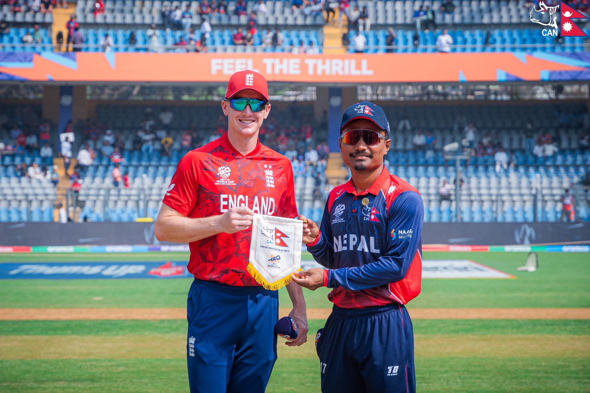 मुम्बईस्थित वानखेडे स्टेडियममा इङ्ल्यान्डले टस जितेर ब्याटिङ गर्ने निर्णय गरेको छ । टस हारेको नेपालले पहिले बलिङ गर्दैछ । नेपालले टेस्ट टोली इङ्ल्यान्डसँग पहिलो पटक खेल्न लागेको हो ।