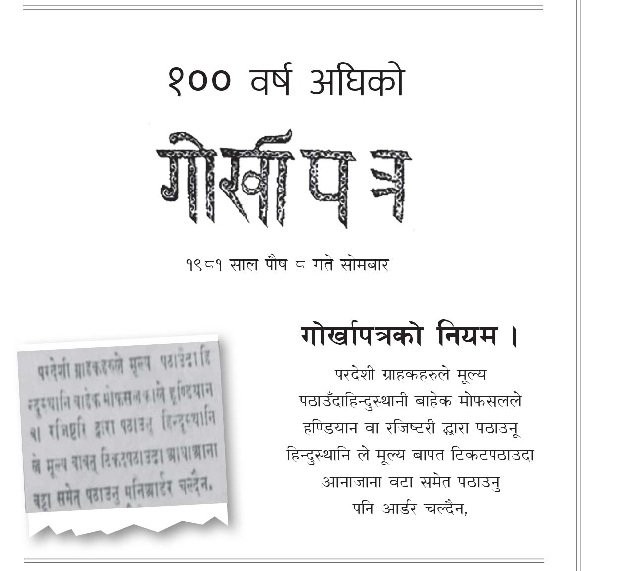 १०० वर्ष अघिको गोर्खापत्र