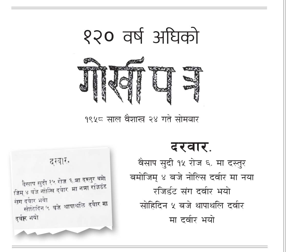 १२० वर्ष अघिको गोर्खापत्र