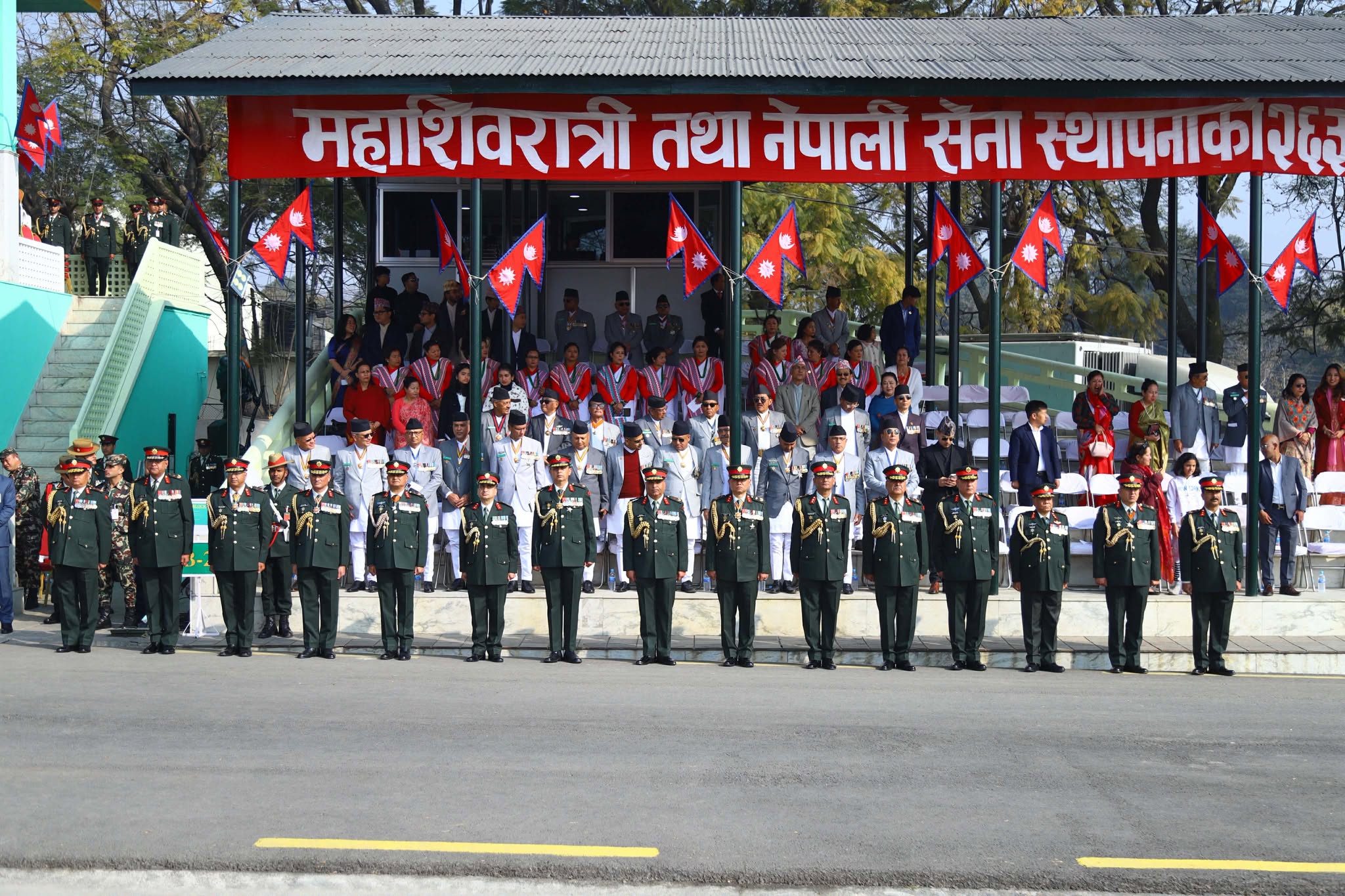 काठमाडौं, फागुन ३ गते । नेपाली सेनाले आफ्नो स्थापनाको २६३ औँ वार्षिकोत्सव आइतबार काठमाडौंको टुँडिखेलमा विभिन्न कार्यक्रम गरी मनाएको छ । सेनाले महाशिवरात्रि पर्व तथा सेना दिवसको अवसरमा आयोजना गरेको विशेष समारोह सैन्य परेड (शस्त्राभ्यास) तथा तोप बढाइँ, कवाजलगायत विविध सांस्कृतिक कार्यक्रम गरि मनाएको छ ।