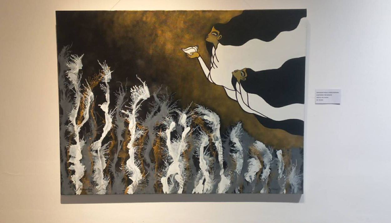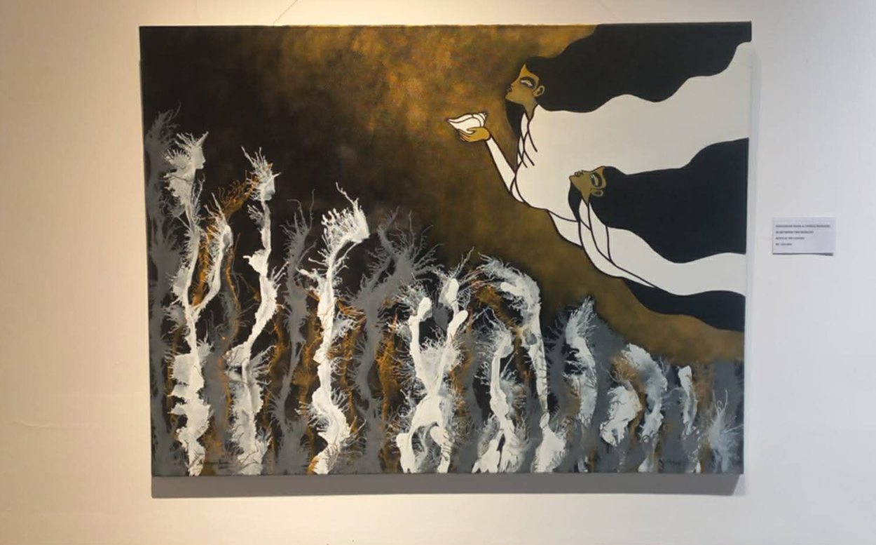 दुवै कलाकारले तीन क्यानभासमा संयुक्त रूपमा काम गर्दै रङ्ग र संवेदनाको संयोजन प्रस्तुत गर्नुभएको छ।सहअस्तित्व, संवाद र अनुभूतिको सेतु निर्माण गर्ने प्रयास स्वरूप प्रस्तुत ‘बिटविन टु वर्ल्ड्स’ले कला पारखीको ध्यान खिच्ने अपेक्षा गरिएको छ।