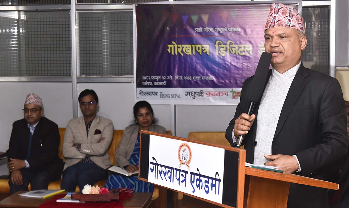 ‘डिजिटल युगअनुसार गोरखापत्रको डिजिटल प्रकाशन अगाडि बढेको छ। यसलाई हामीले समयअनुसार रूपान्तरण गरेका छौँ’, उहाँले भन्नुभयो, ‘पछिल्लो समय पाठकमाझ हाम्रो उपस्थिति दरिलो बनेको छ ।’ डिजिटल दुनियाँमा गोरखापत्र विषयवस्तुका हिसाबले प्रतिस्पर्धी भएको उहाँको भनाइ छ ।