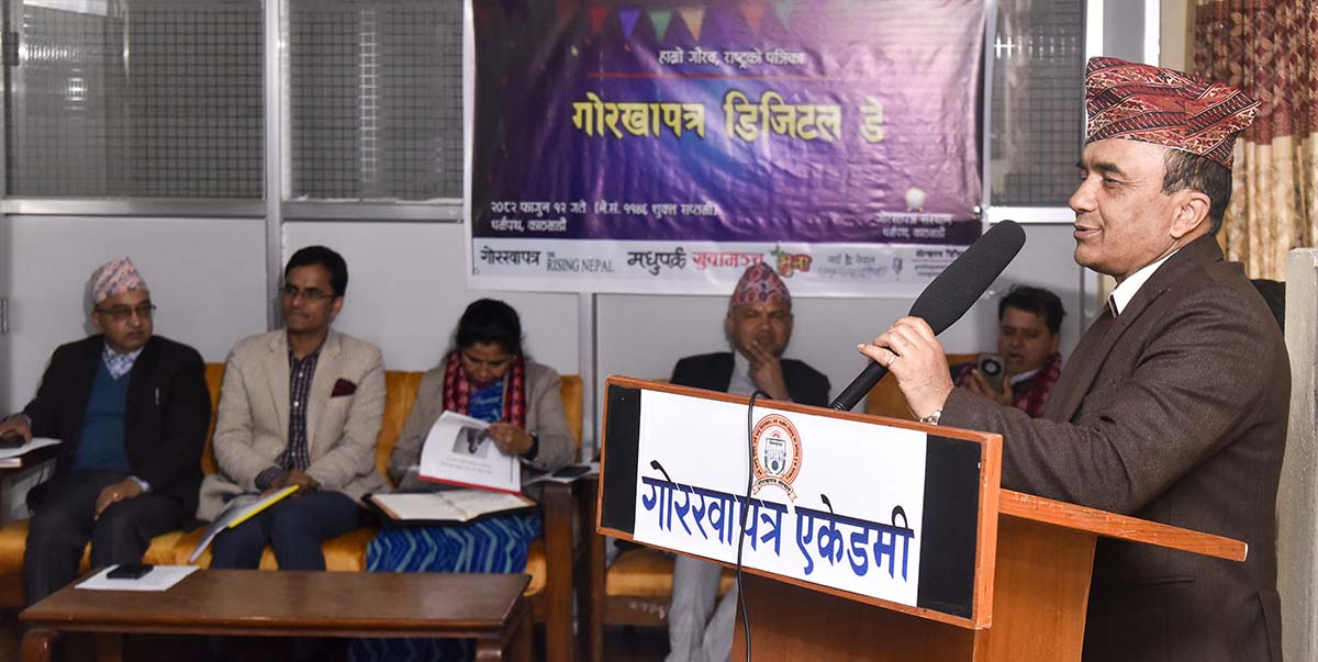 कार्यक्रमको अध्यक्षता गर्नुभएका गोरखापत्र डिजिटल विभाग प्रमुख नारदमुनि गौतमले गोरखापत्र संस्थान डिजिटल दुनियाँको ऐतिहासिक मोडमा उभिएको उल्लेख गर्नुभयो । उहाँले गोरखापत्र सरकारको मात्र नभएर सिङ्गो राष्ट्रको मुखपत्र भएको बताउनुभयो । गौतमले गोरखापत्रका डिजिटल प्रकाशन ‘क्लिकबेट’को दौडमा नरहेको उल्लेख गर्दै सत्यको खोजीका लागि अगाडि बढेको दाबी गर्नुभयो ।