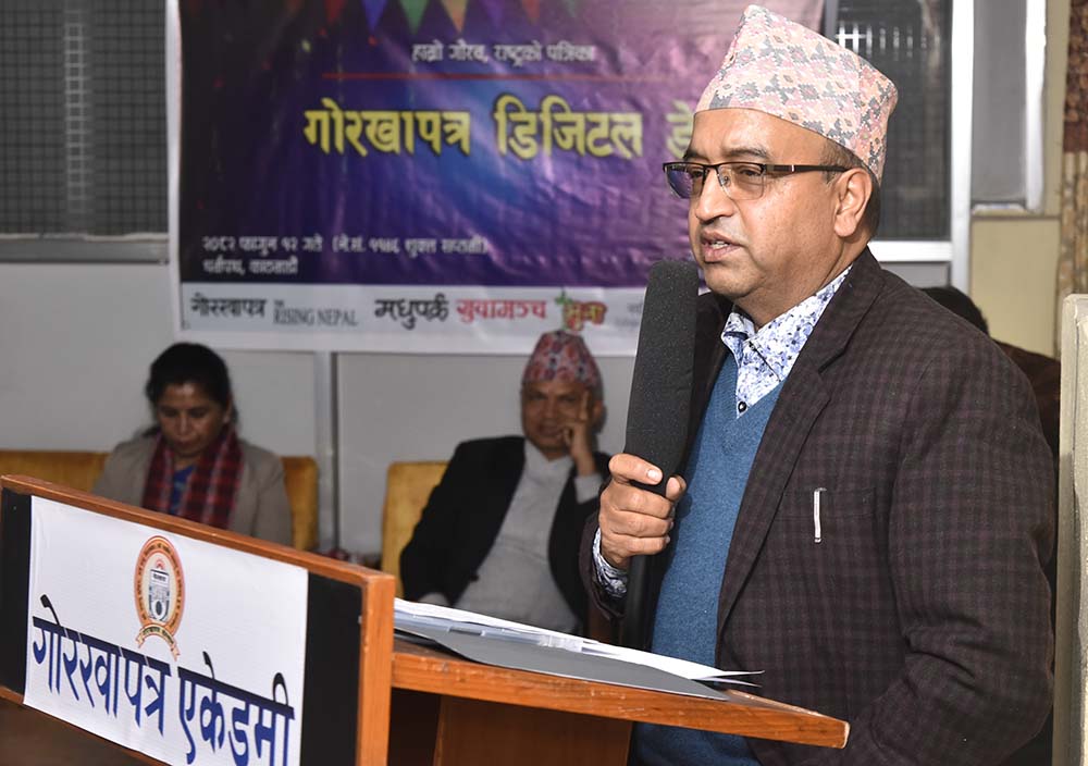 ‘गोरखापत्रजस्तो १२५ वर्षको इतिहास बोकेको संस्थान डिजिटल युगमा प्रवेश गर्नु र ‘डिजिटल डे’ मनाउनु आवश्यक छ’, कार्यक्रमलाई सम्बोधन गर्दै सचिव बस्नेतले भन्नुभयो, ‘डिजिटल युगमा प्रवेश गर्नु समय सान्दर्भिक र समयको माग हो ।’