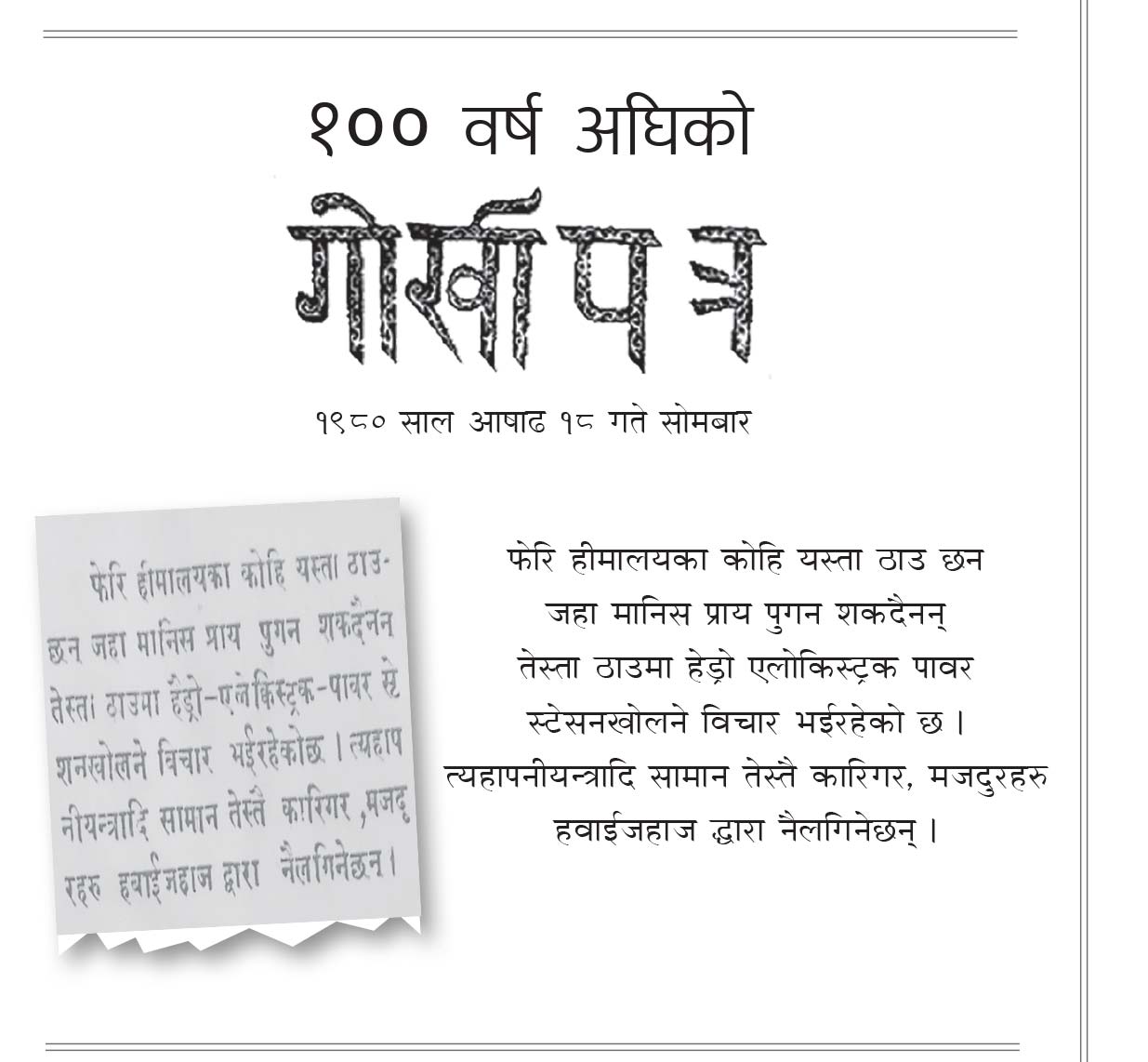 १०० वर्ष अघिको गोर्खापत्र