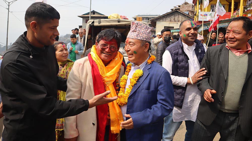 फिदिम, फागुन १८ गते । मौन अवधि सुरु हुन केही घण्टा मात्र बाँकी रहँदा सोमबार पाँचथर सदरमुकाम फिदिममा राजनीतिक दलहरू प्रचारप्रसारमा व्यस्त देखिएका छन् । घरदैलोका क्रममा प्रतिस्पर्धी दलका उम्मेदवार र कार्यकर्ताबिच पटक–पटक भेट भए पनि उनीहरूमा कुनै असहजता देखिएन । बरु नेता तथा कार्यकर्ताले एकापसमा हात मिलाए भने उम्मेदवारले अङ्कमाल गरेर सद्भाव साटेका छन्।