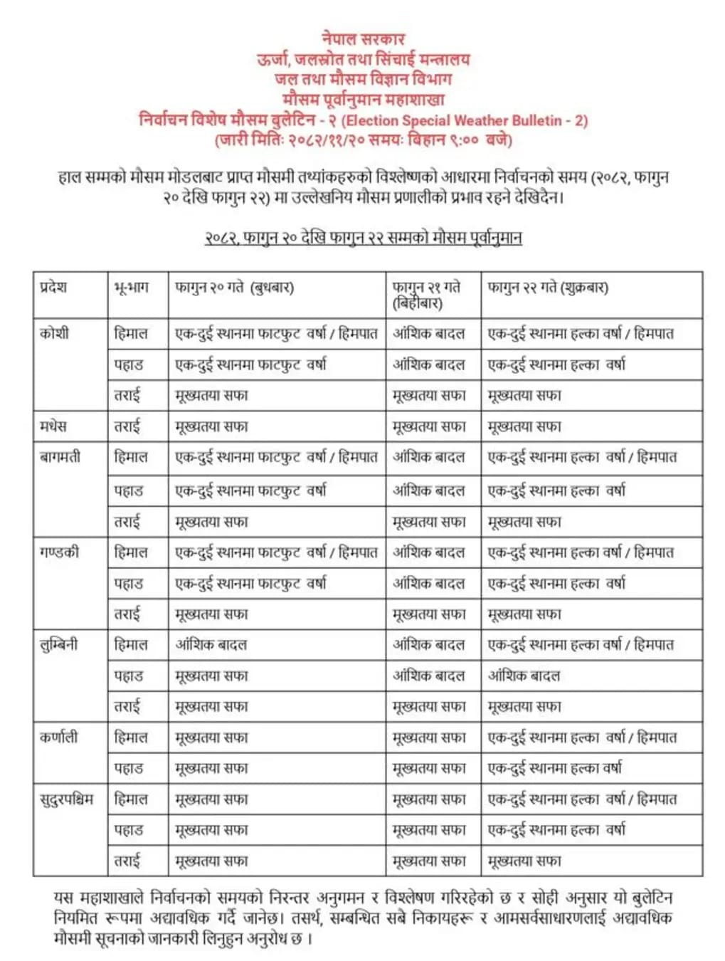 यस्तो छ निर्वाचन विशेष मौसम पूर्वानुमान