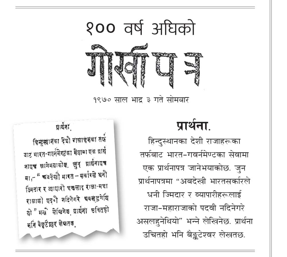 १०० वर्ष अघिको गोर्खापत्र