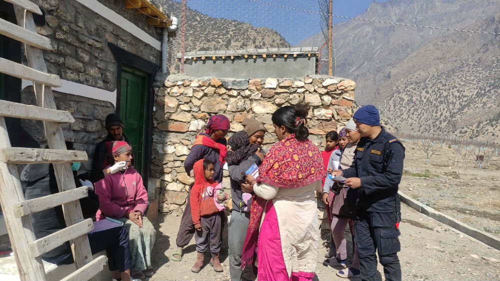 मुक्तिनाथ (मुस्ताङ), फागुन २९ गते । मुस्ताङको बारागुङ मुक्तिक्षेत्र गाउँपालिका–४, ग्यतङथाङ्कमा ज्यालामजदुरी गर्ने म्याग्दीको धवलागिरि गाउँपालिका–६, मराङका रामबहादुर कामीले वडाबाट खटिएका स्वास्थ्यकर्मीबाट निःशुल्क स्वास्थ्य परीक्षण गराई औषधि लिनुभयो ।