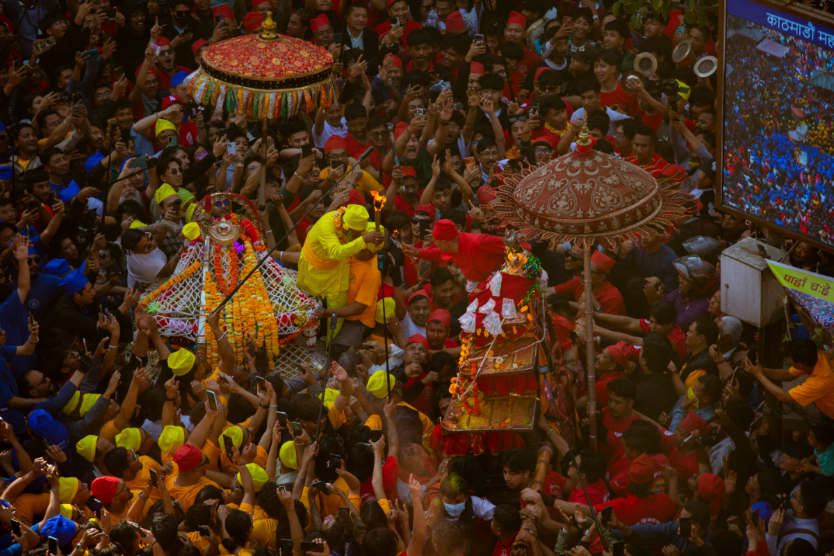 वचूँ भद्रकाली असन आइपुगेपछि पहेलो टोपी लगाएकाले लुँमधी भद्रकालीको खट बोकेर असन चोकमा आइ पुगे । दुई देवीको खट असन पुगेपछि जात्रामा सहभागी बाजा र भक्तजन दर्शालुको भीड पनि बिस्तारै बढ्दै गयो ।