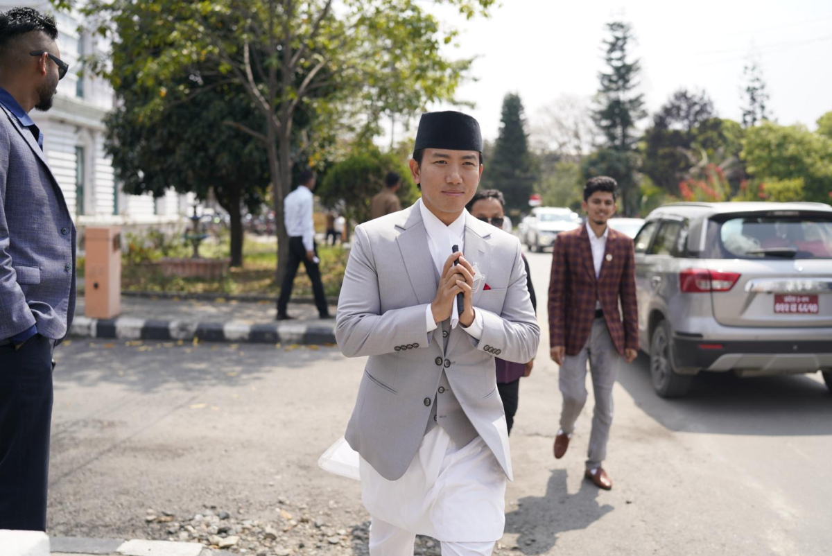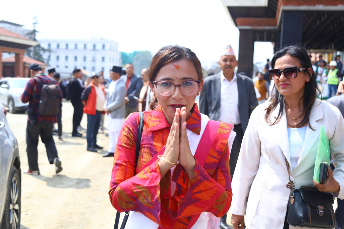 काठमाडौँ, चैत १२ गते । प्रतिनिधिसभा सदस्य शपथका लागि सिंहदरबार पुगेका छन् । शपथ ग्रहण समारोहमा विभिन्न राष्ट्रिय पोशाकमा सांसद सिंहदरबार पुगेका हुन् । सबै सांसदले ज्येष्ठ सदस्य अर्जुननरसिंह केसीसँग पद तथा गोपनीयताको शपथ ग्रहण गर्दै हुनुहुन्छ ।