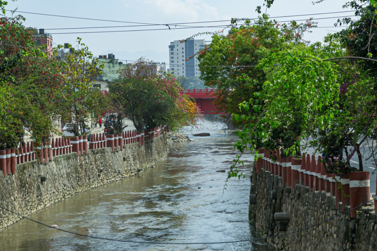 नदीको बहाव अहिले शान्त छ र किनारका तटबन्धहरू सफा देखिन्छन् । ढुङ्गाको कलात्मक पर्खाल र व्यवस्थित फुटपाथले गर्दा नदी क्षेत्र थप सुरक्षित र आकर्षक बनेको छ । यद्यपि, पानीमा दुर्गन्ध भने अझै कायमै छ, जसले नदी शुद्धीकरणका लागि थप काम गर्न बाँकी रहेको देखाउँछ ।