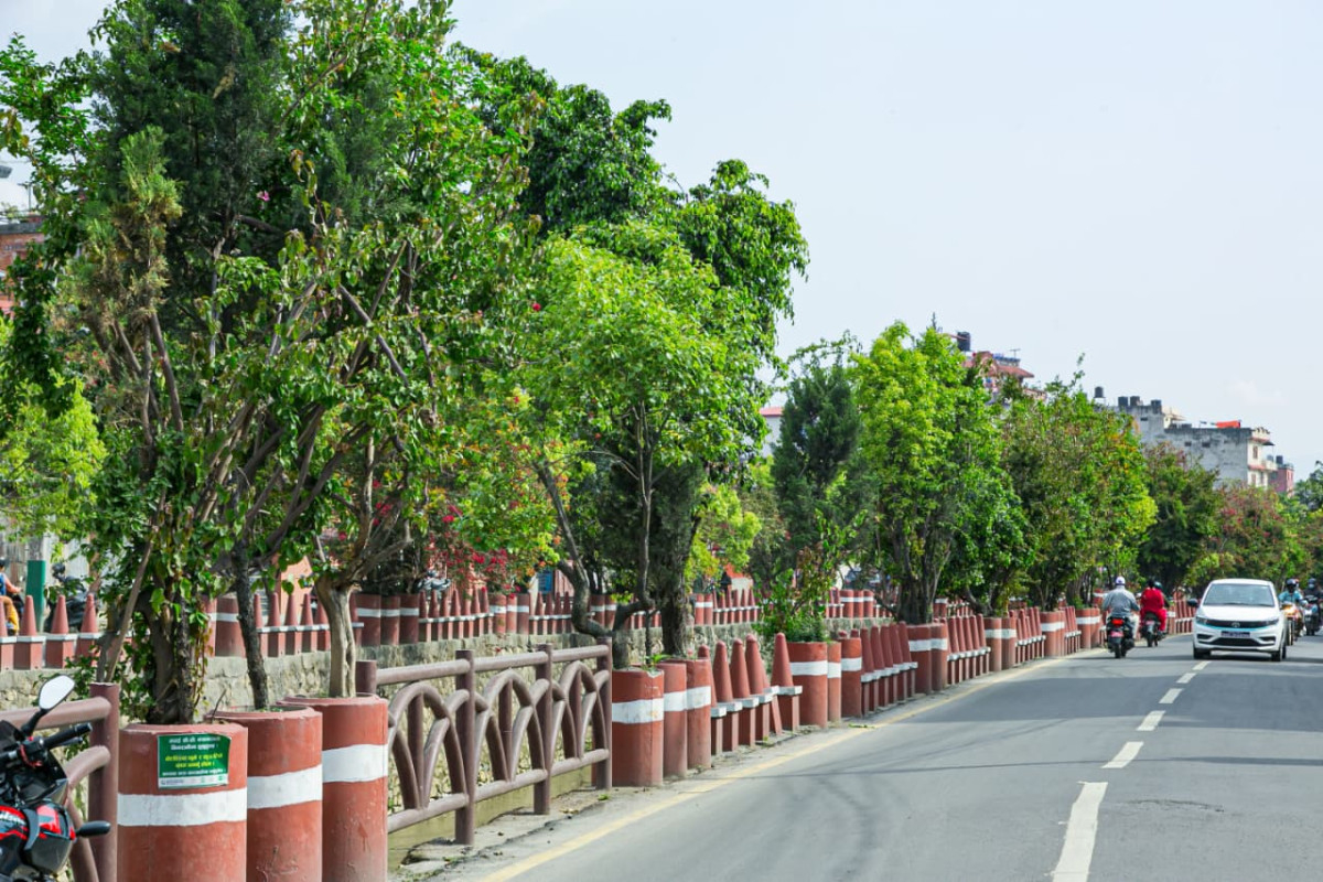 पृष्ठभूमिमा देखिने आधुनिक भवन र अगाडिको भागमा देखिएको सघन हरियालीले काठमाडौँले आधुनिकता र प्रकृतिबीच सन्तुलन मिलाउने प्रयास गरिरहेको झल्काउँछ । बिजुलीका पोल र कोरिडोर सडकको व्यवस्थित निर्माणले सहरी विकासको सकारात्मक पाटोलाई उजागर गरेको छ । बागमती सफाइ महाअभियान र सरकारको कोरिडोर निर्माण योजनाले अहिले सार्थक रूप लिँदै गएको देखिन्छ । नदीको स्वच्छतालाई कायम राख्दै यस्तै प्रकारको सौन्दर्यकरणलाई निरन्तरता दिने हो भने बागमती पुनः आफ्नो पुरानो साख र सभ्यतामा फर्कने विश्वास गर्न सकिन्छ ।