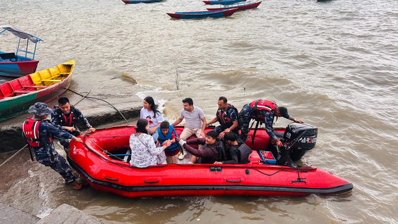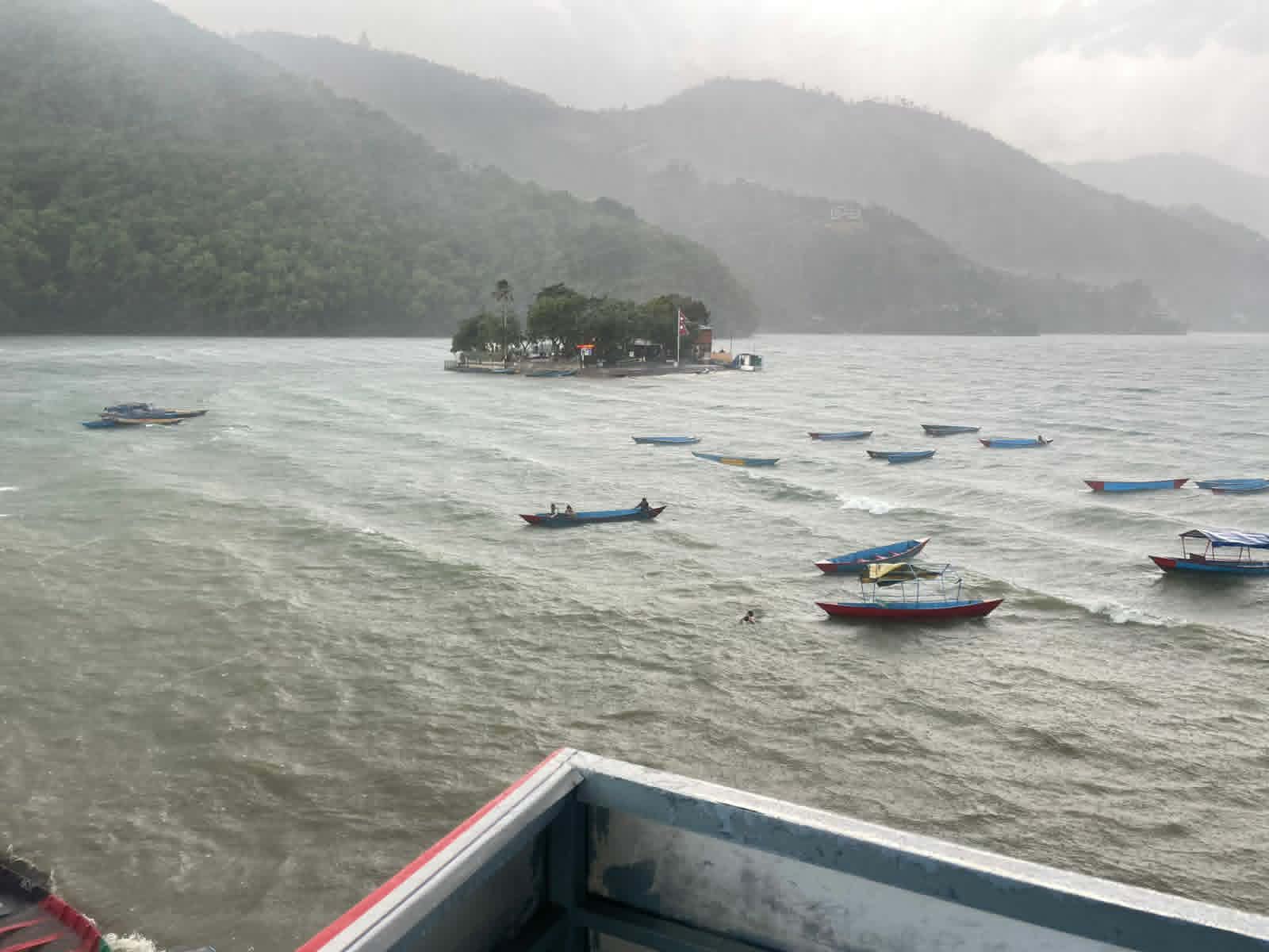 पोखरा, चैत २२ गते । कास्कीको पोखरा महानगरपालिका–६ स्थित फेवातालको बीच भागमा अलपत्र परेका ११ जनाको आइतबार सशस्त्र प्रहरीले सकुशल उद्धार गरेको छ । अचानक आएको हावाहुरीका कारण स्ट्यान्डिङ प्याडल बोटमा बोटिङ गरिरहेका उनीहरू तालको बीच भागमा फसेका थिए ।