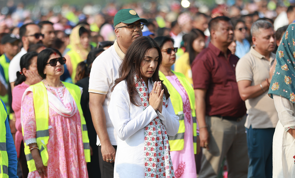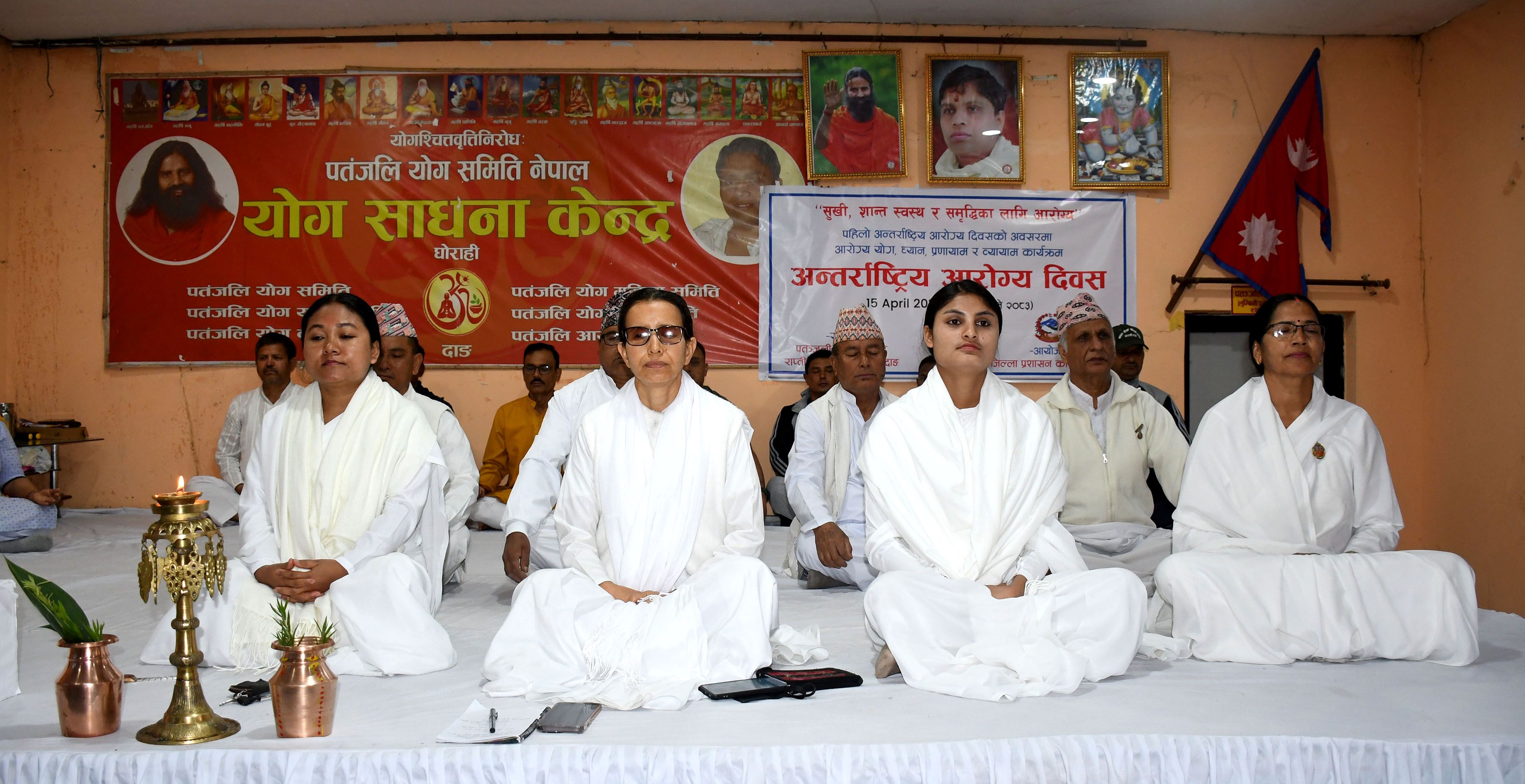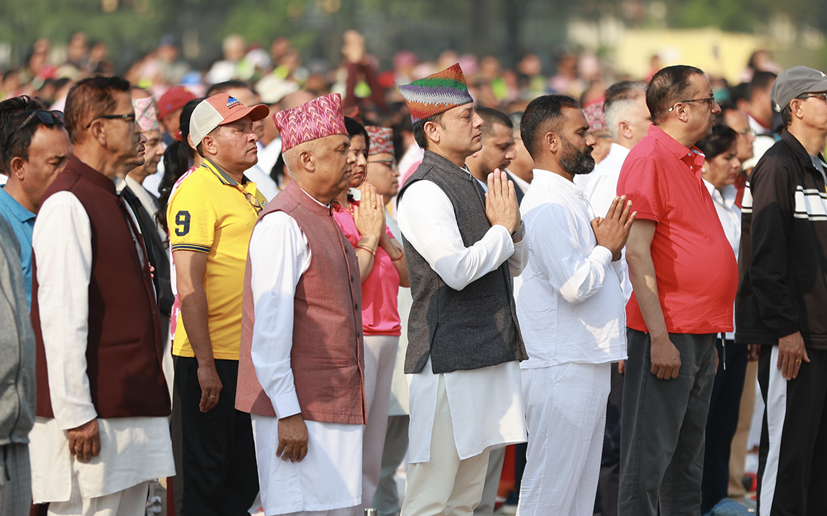काठमाडौँ, वैशाख २ गते । अन्तर्राष्ट्रिय आरोग्य दिवसको अवसरमा आज देशभरि योग अभ्यास गरिएको छ । काठमाडौँको टुँडिखेलमा विशेष कार्यक्रमको आयोजना गरी आरोग्य दिवस मनाइएको छ । योग कार्यक्रममा सभामुख डोलप्रसाद अर्यालदेखि सरकारका प्रतिनिधि, राजनीतिज्ञ, कर्मचारी तथा सर्वसाधारणको सहभागिता थियो ।