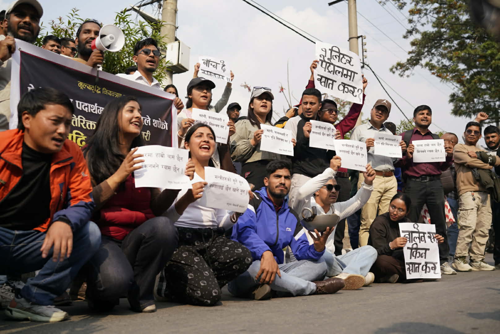 काठमाडौं, वैशाख ३ गते । पेट्रोलियम पदार्थको मूल्य वृद्धि विरुद्ध संयुक्त विद्यार्थी संगठनद्वारा काठमाडौँको माइतीघर क्षेत्रमा प्रदर्शन गरेको छ।