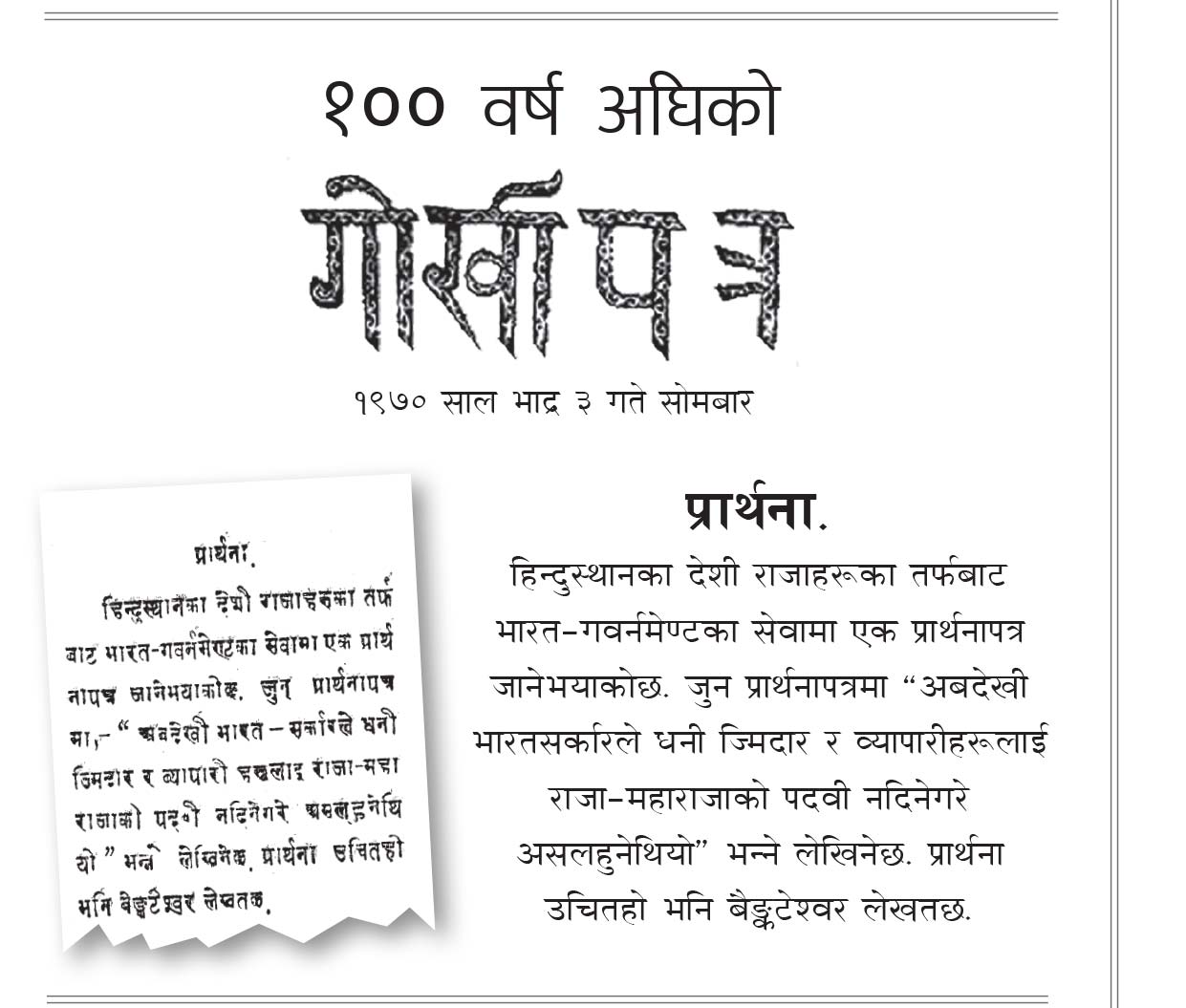 १०० वर्ष अघिको गोर्खापत्र