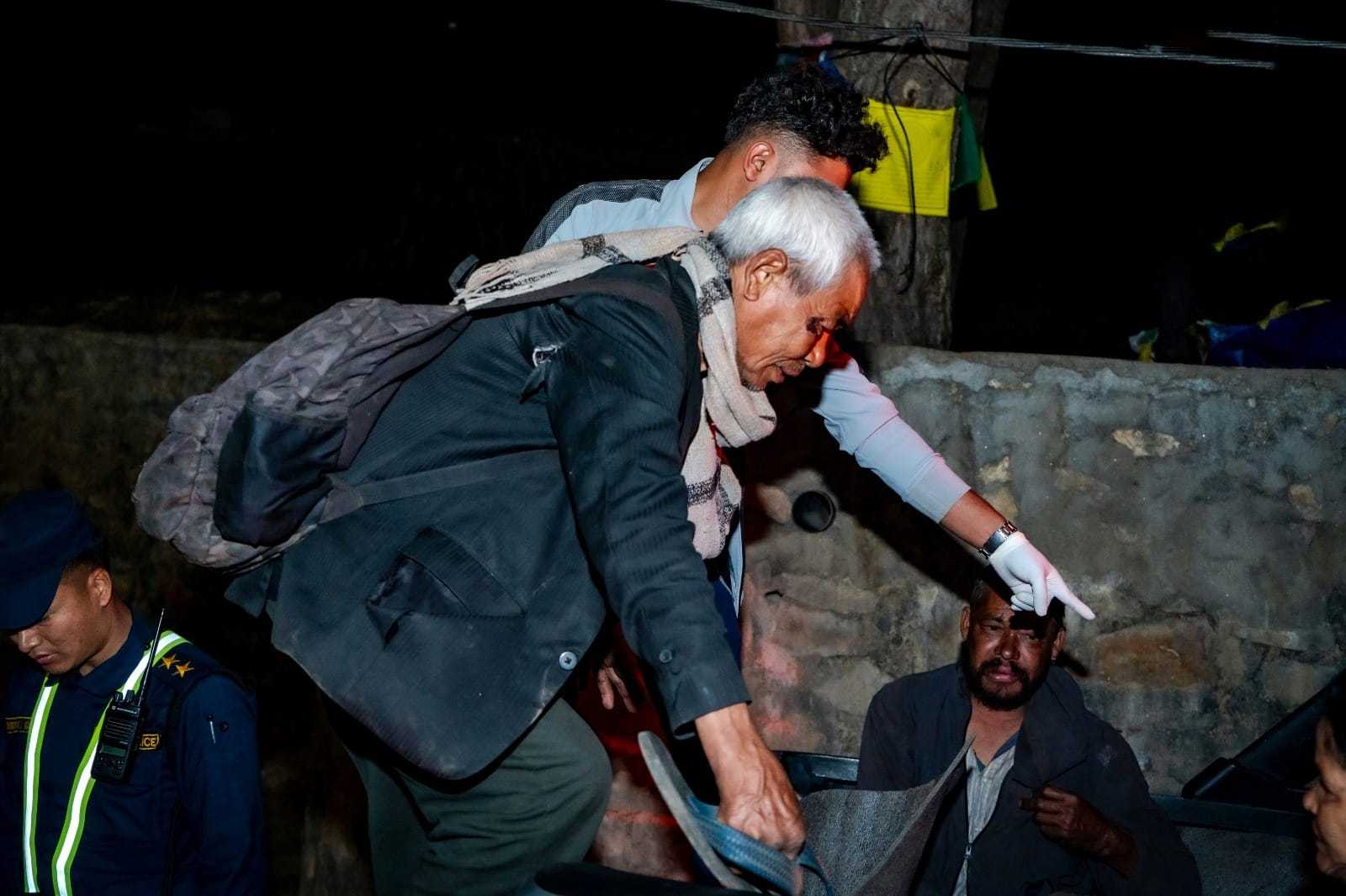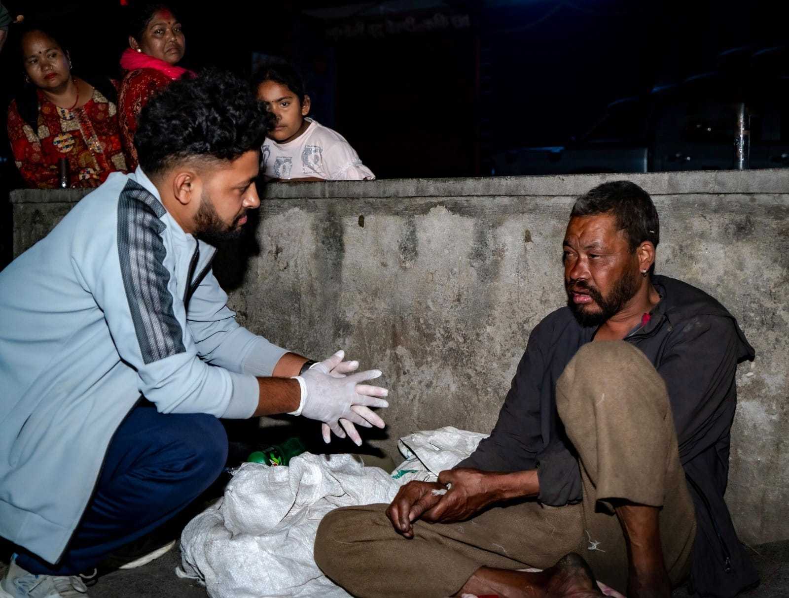 काठमाडौँको स्वयम्भू क्षेत्रबाट सडक सहयोगापेक्षीहरुको उद्धार गरिँदै । तस्बिर : काठमाडौँ महानगरपालिका