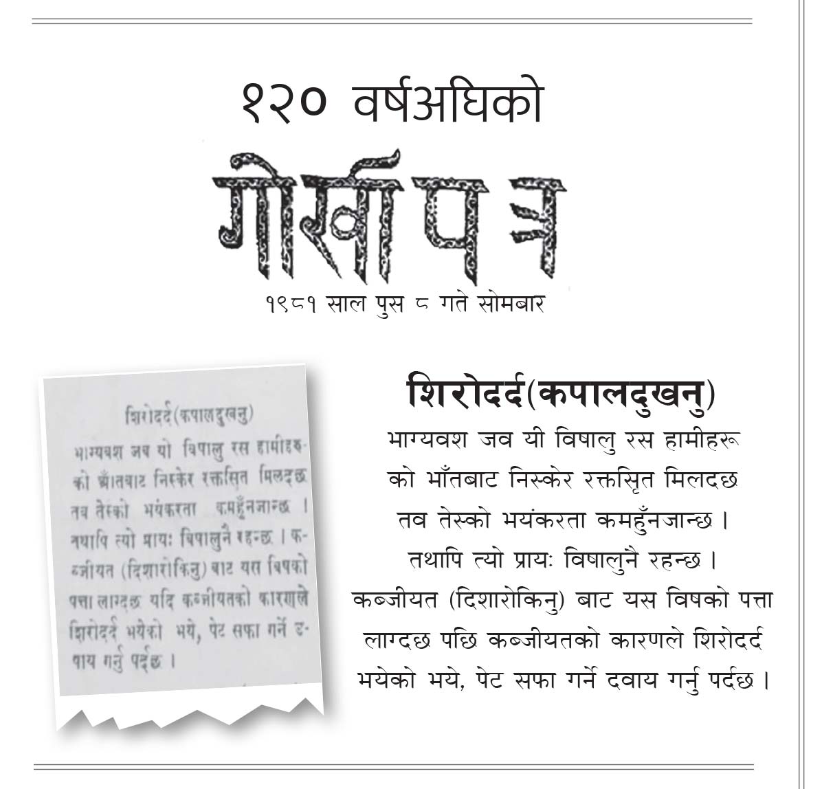 १२० वर्ष अघिको गोर्खापत्र