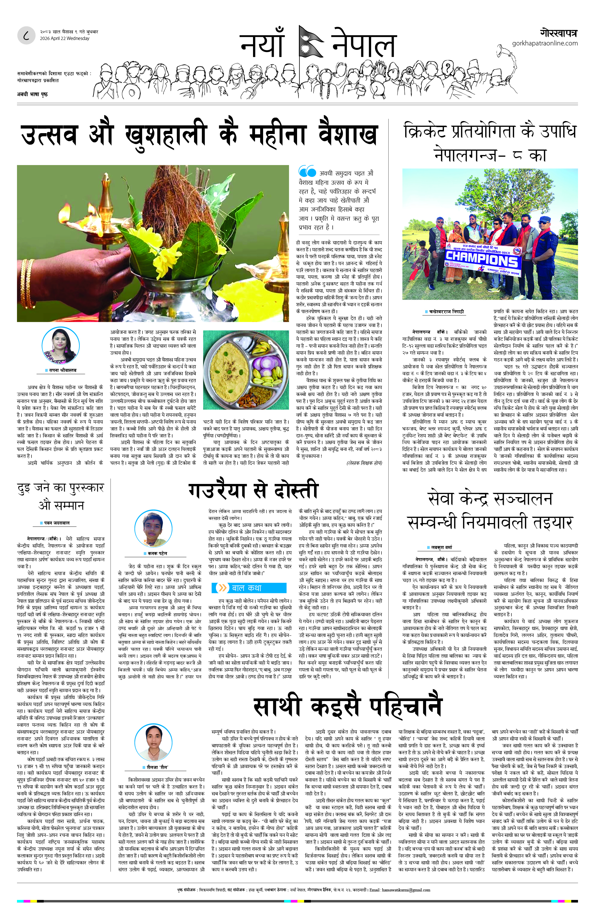 समावेशीकरणको दिशामा नयाँ फड्को : गोरखापत्रद्वारा प्रकाशित अवधी भाषा