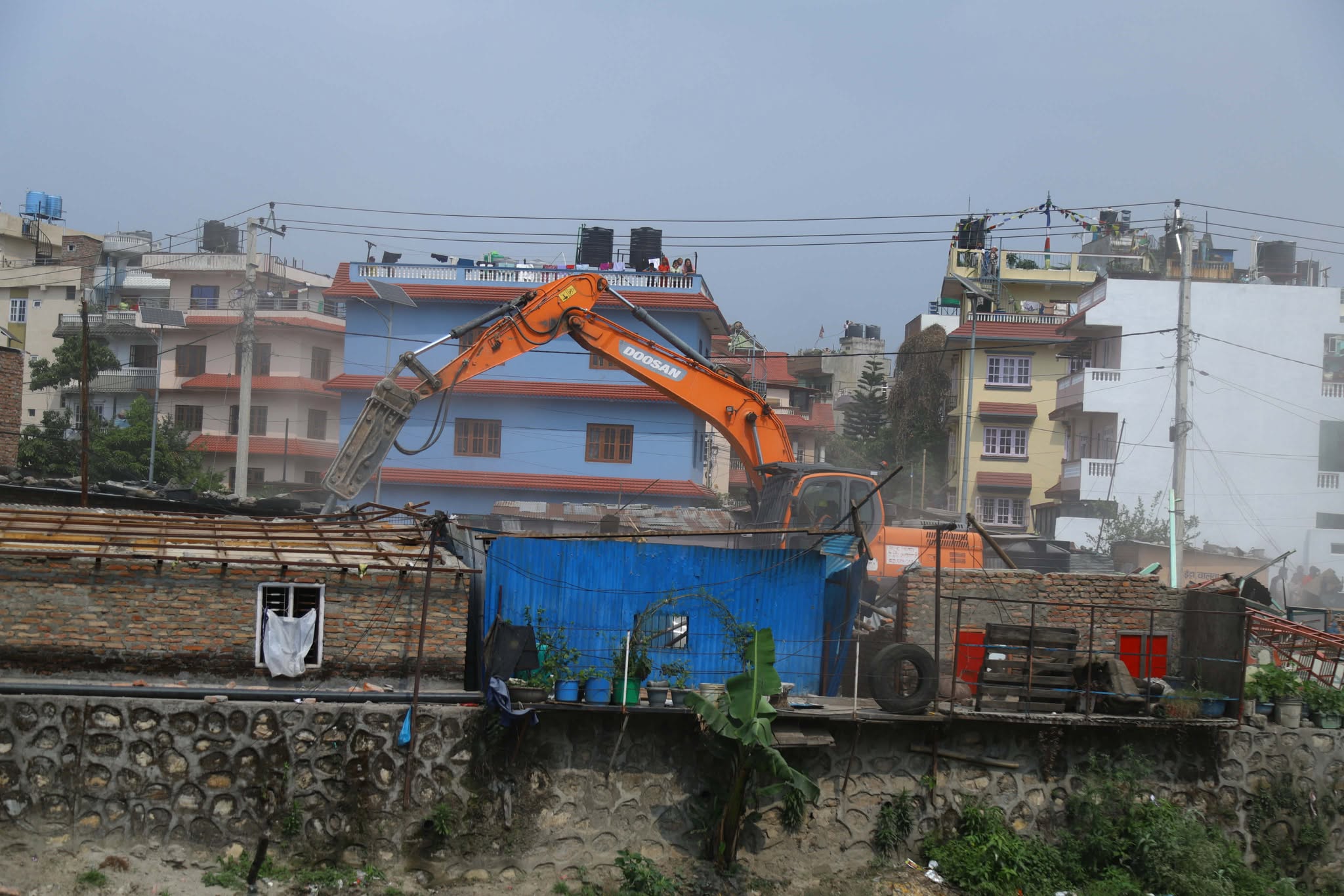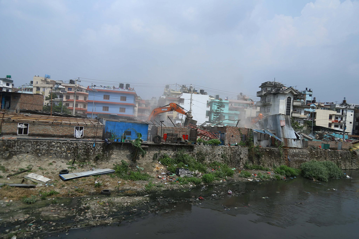 गैरीगाउँस्थित बागमती काेरिडोरमा रहेको सुकुमवासी बस्ती हटाइँदै तस्बिर : केशब गुरुङ