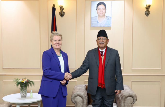 काठमाडौँ, माघ २९ गते । प्रधानमन्त्री पुष्पकमल दाहाल ‘प्रचण्ड’सँग नेपालका लागिका नर्वेका राजदूत टाेरून ड्राम्दालले शिष्टाचार भेट गर्नुभएको छ ।